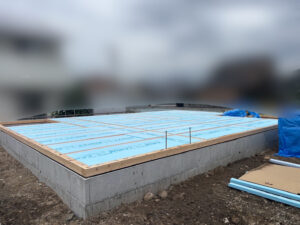 美濃加茂市の現場、基礎工事完成いたしました。並行して行っていた造成ブロック積みも完成したので様子をUPします!