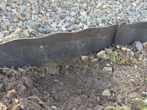 除草シートに砂利敷のみの外構となります。