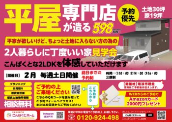 4月 土岐市 平屋20坪2LDK モデルハウス