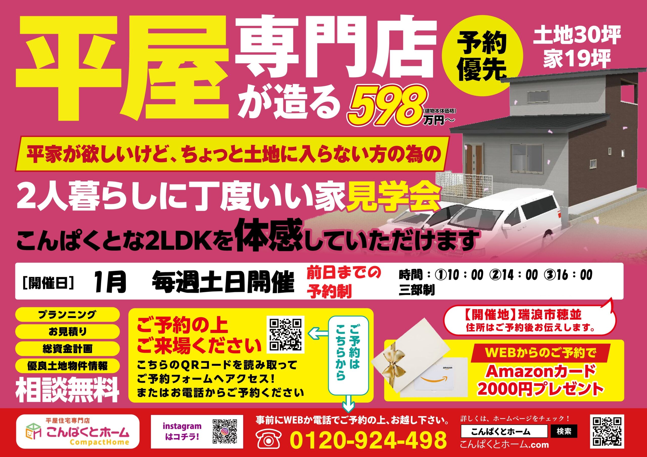 予約方法:ホームぺージから予約若しくはお電話にてお問合せください。